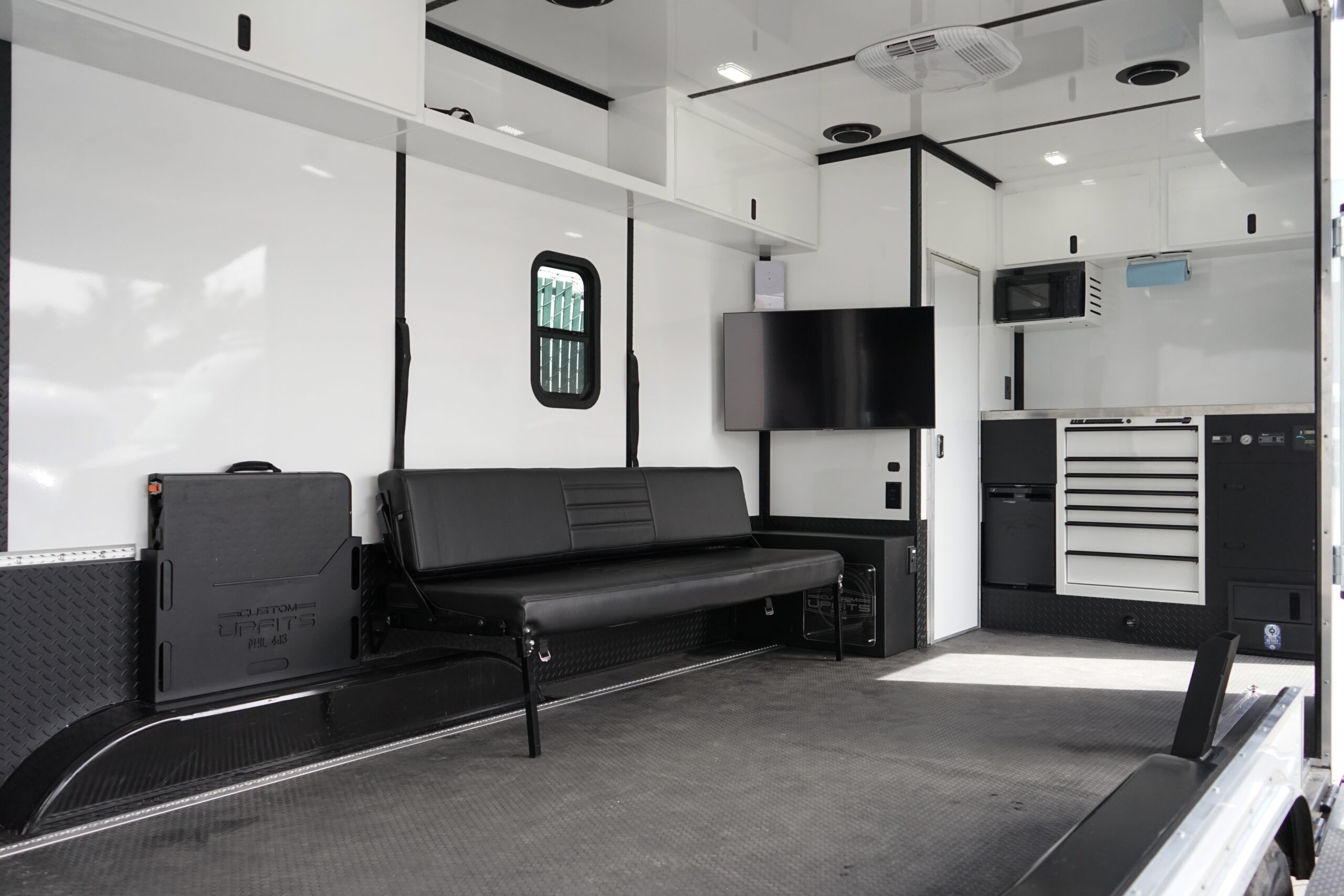 A Custom Upfits moto trailer can be all that you need it to be. Our 6×10 and 7×14 models are very popular due to their easy maneuverability and two bike capability.
