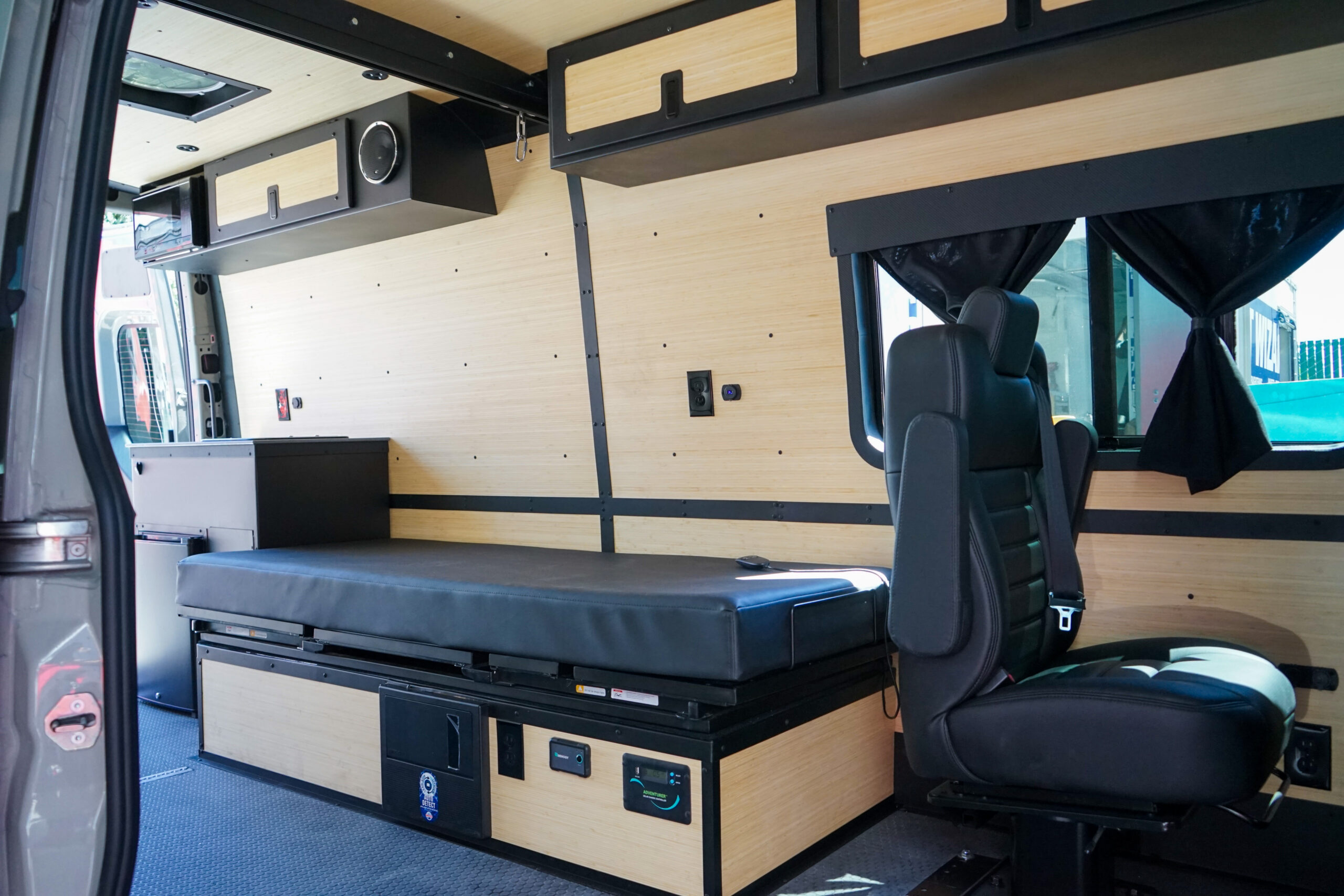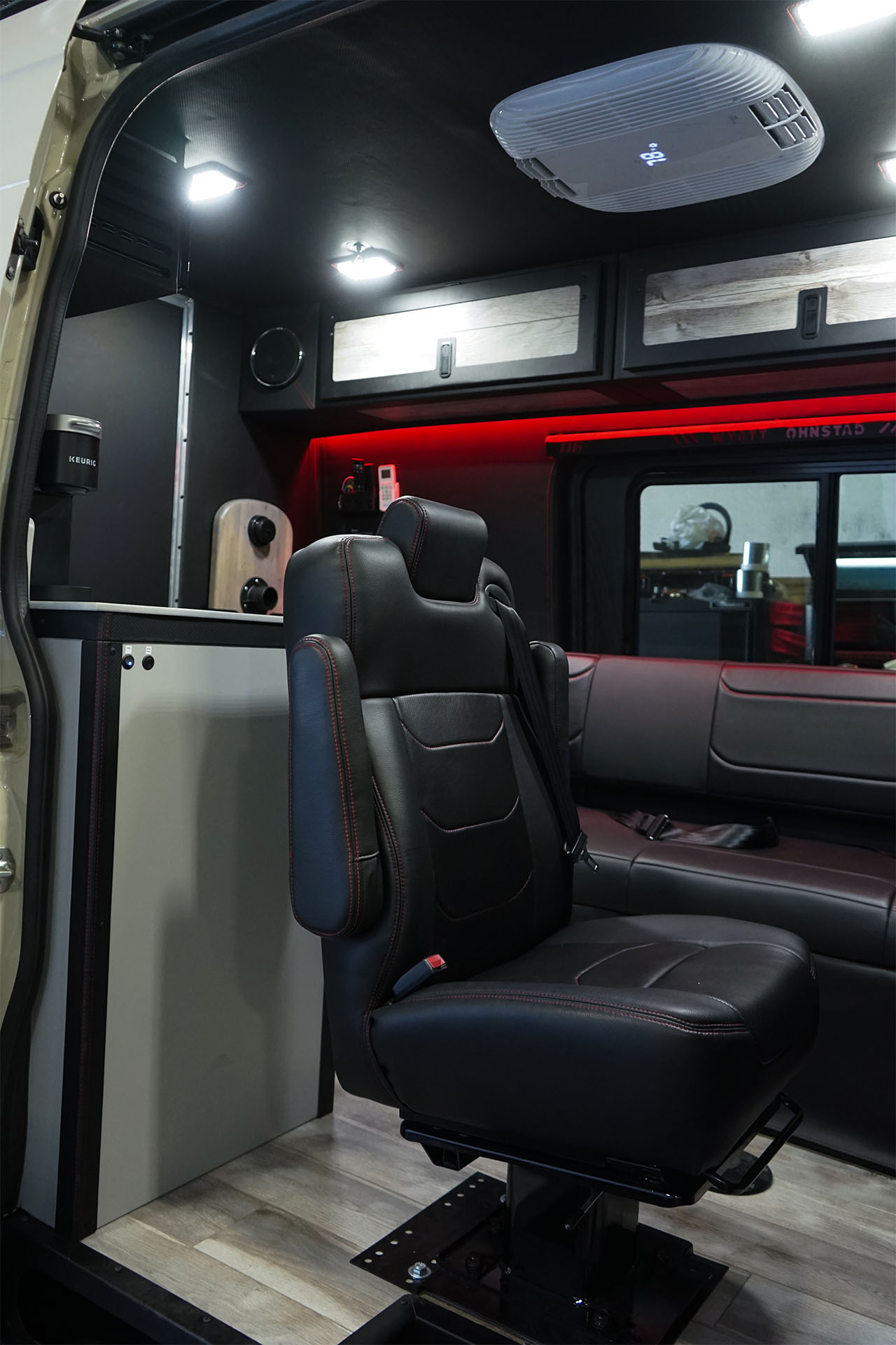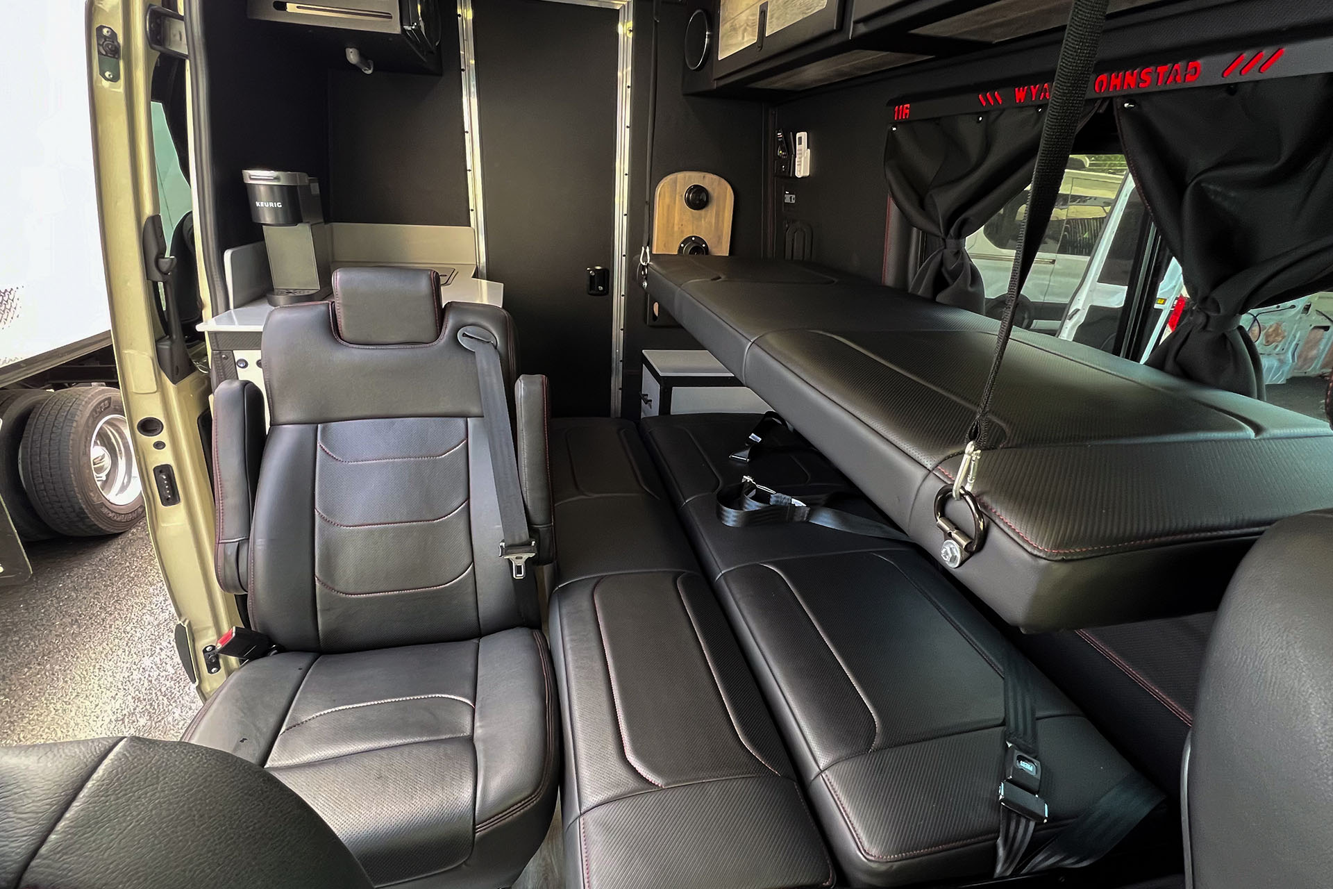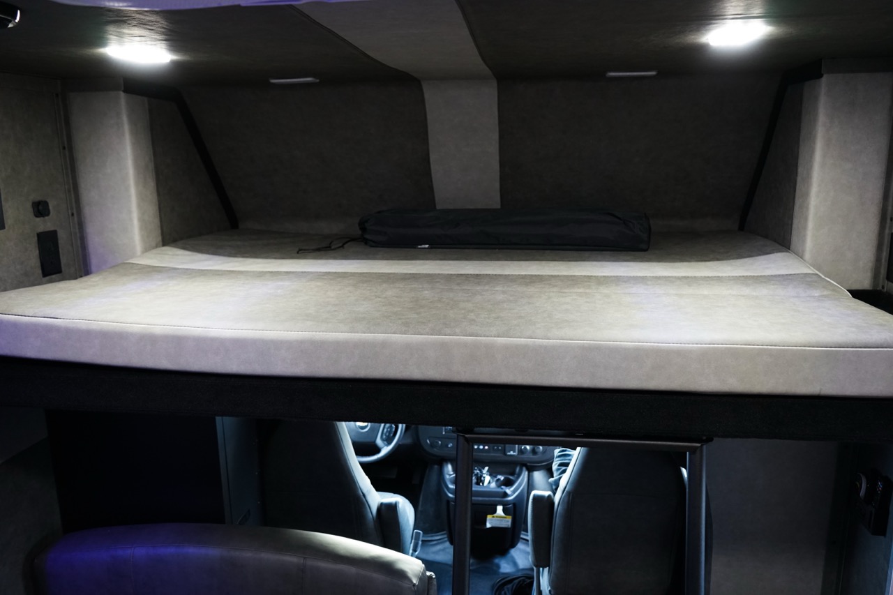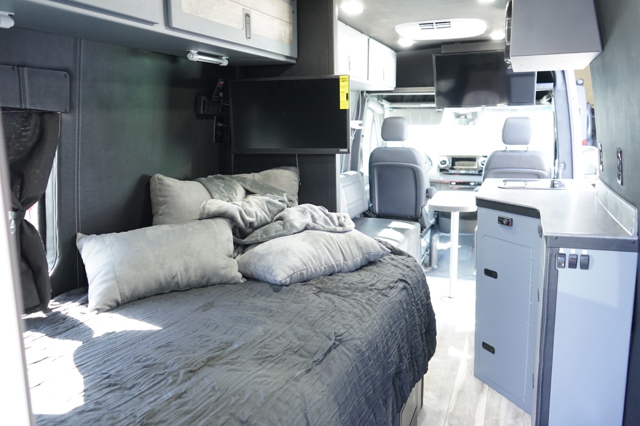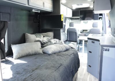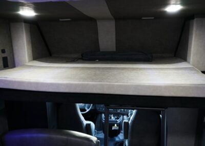 Up front a combination sleep, travel and entertainment package can be customized to match your style. It all about creating a great space so you can enjoy the ride.