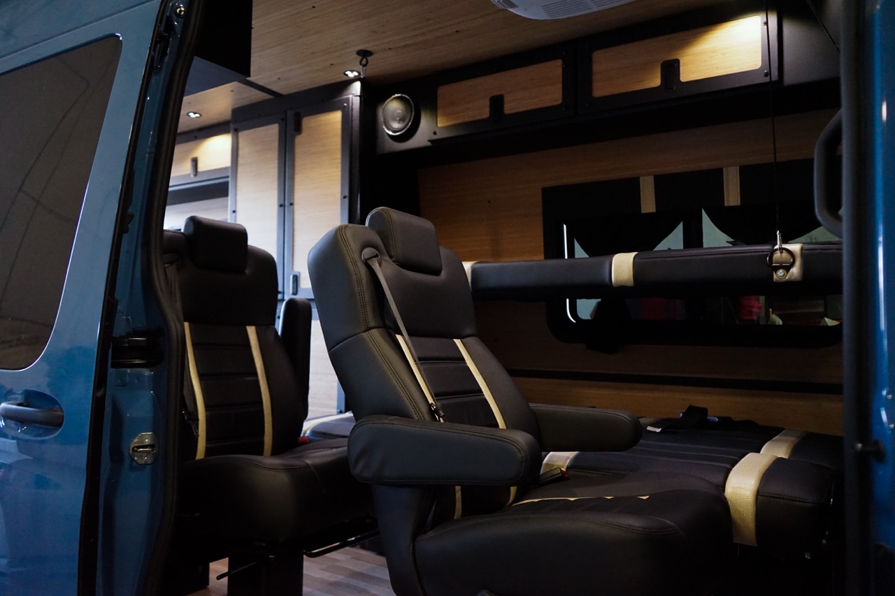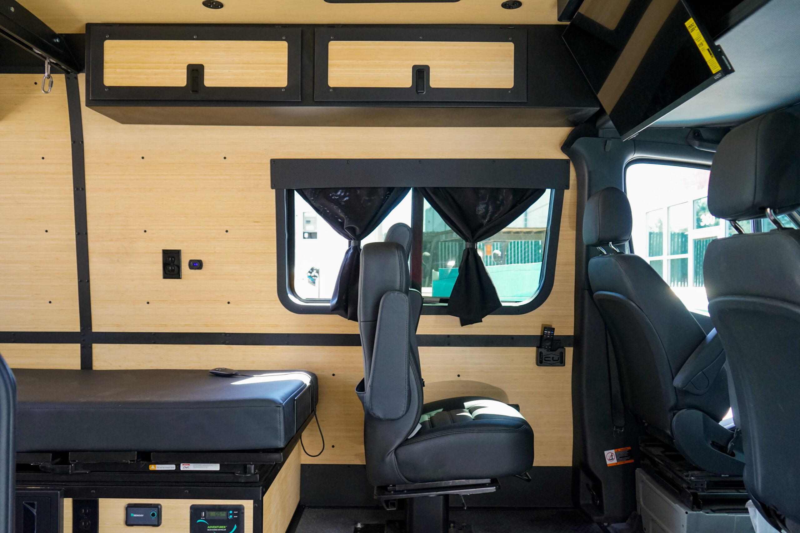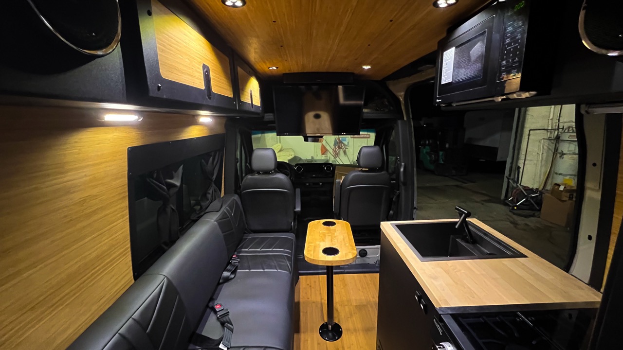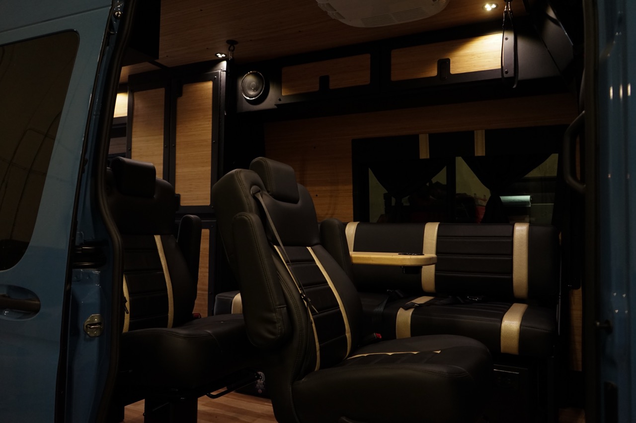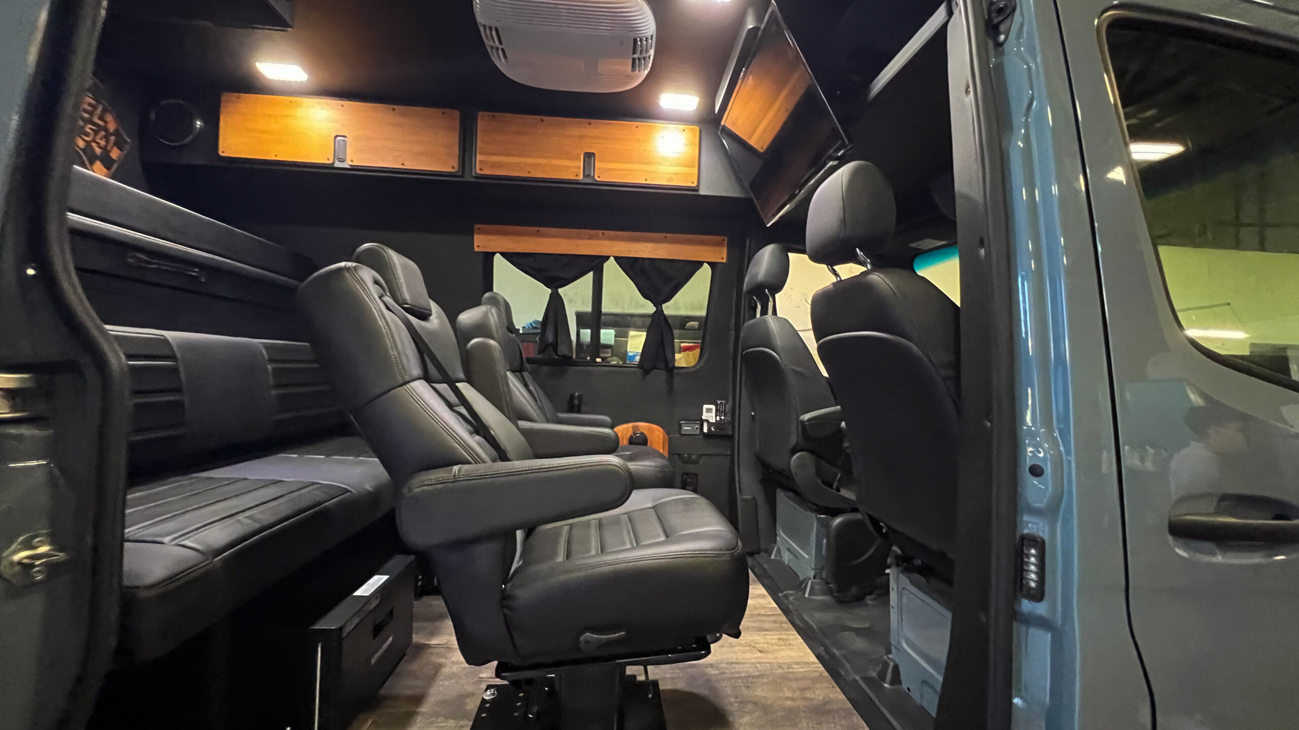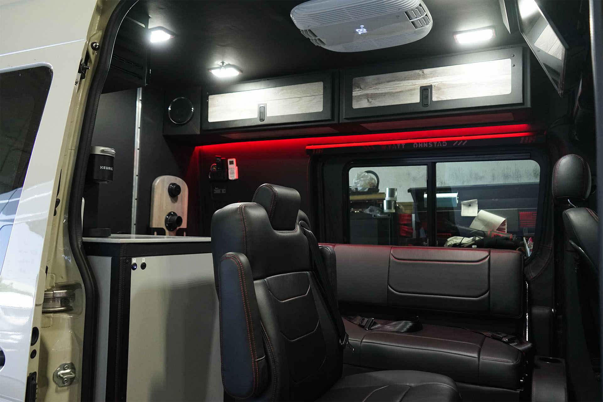 Up front a combination sleep, travel and entertainment package can be customized to match your style. It all about creating a great space so you can enjoy the ride.