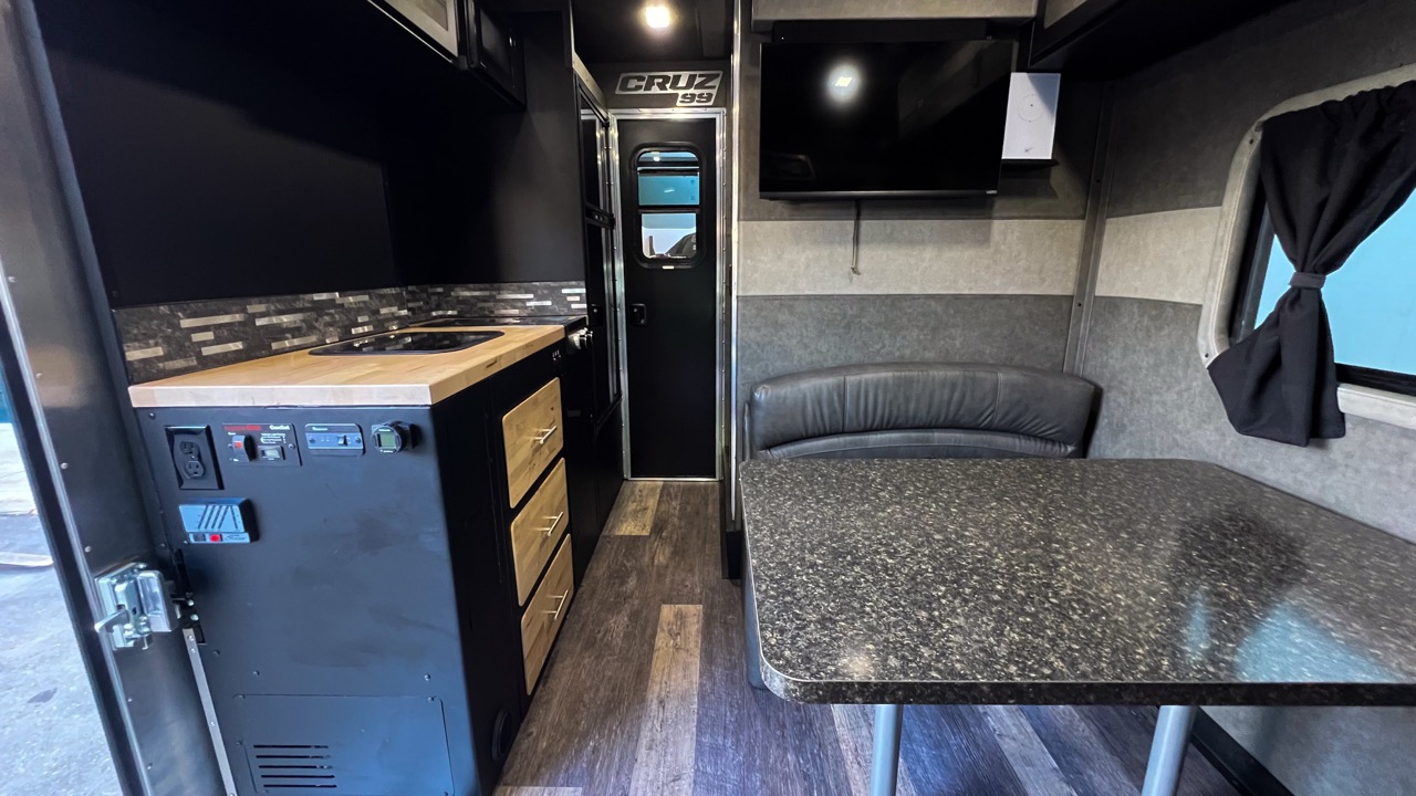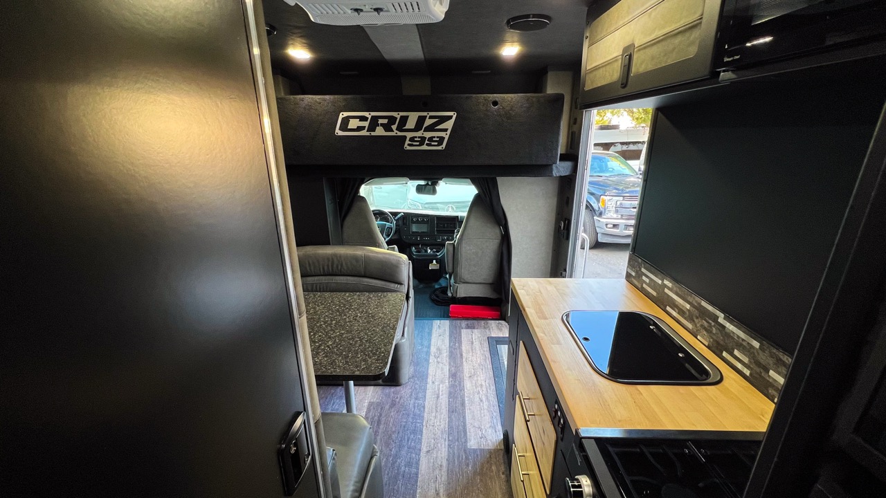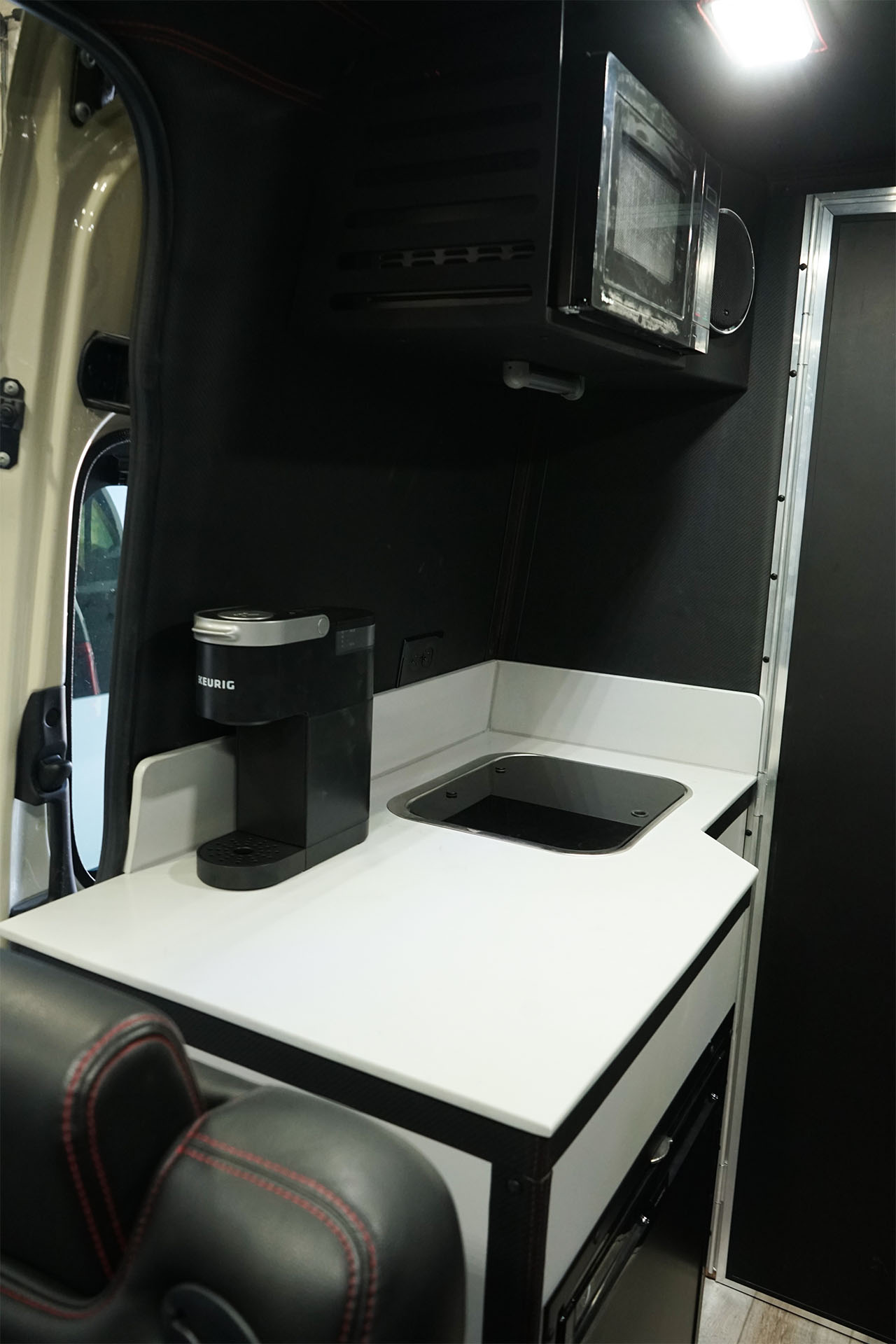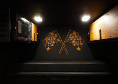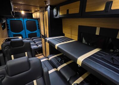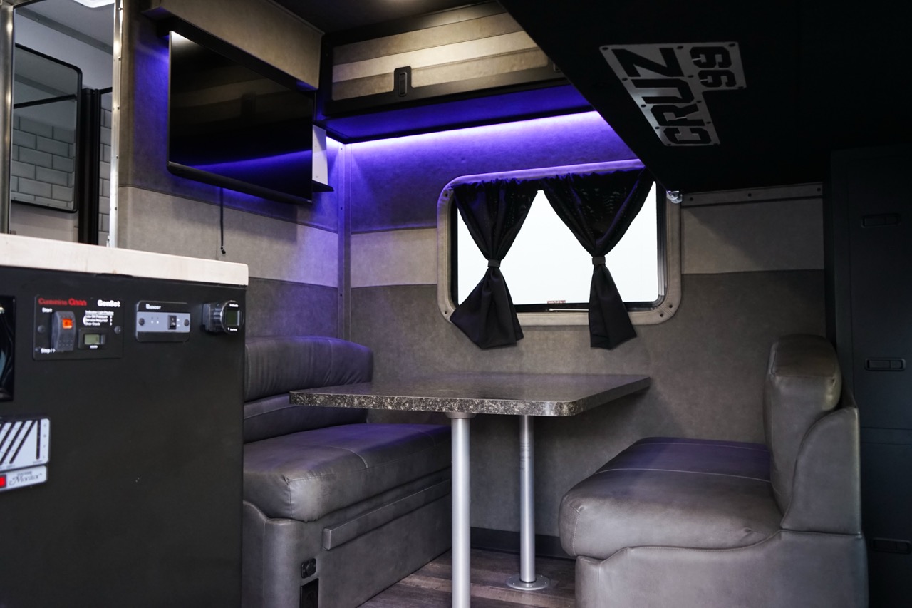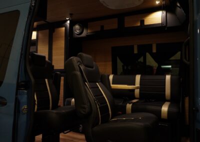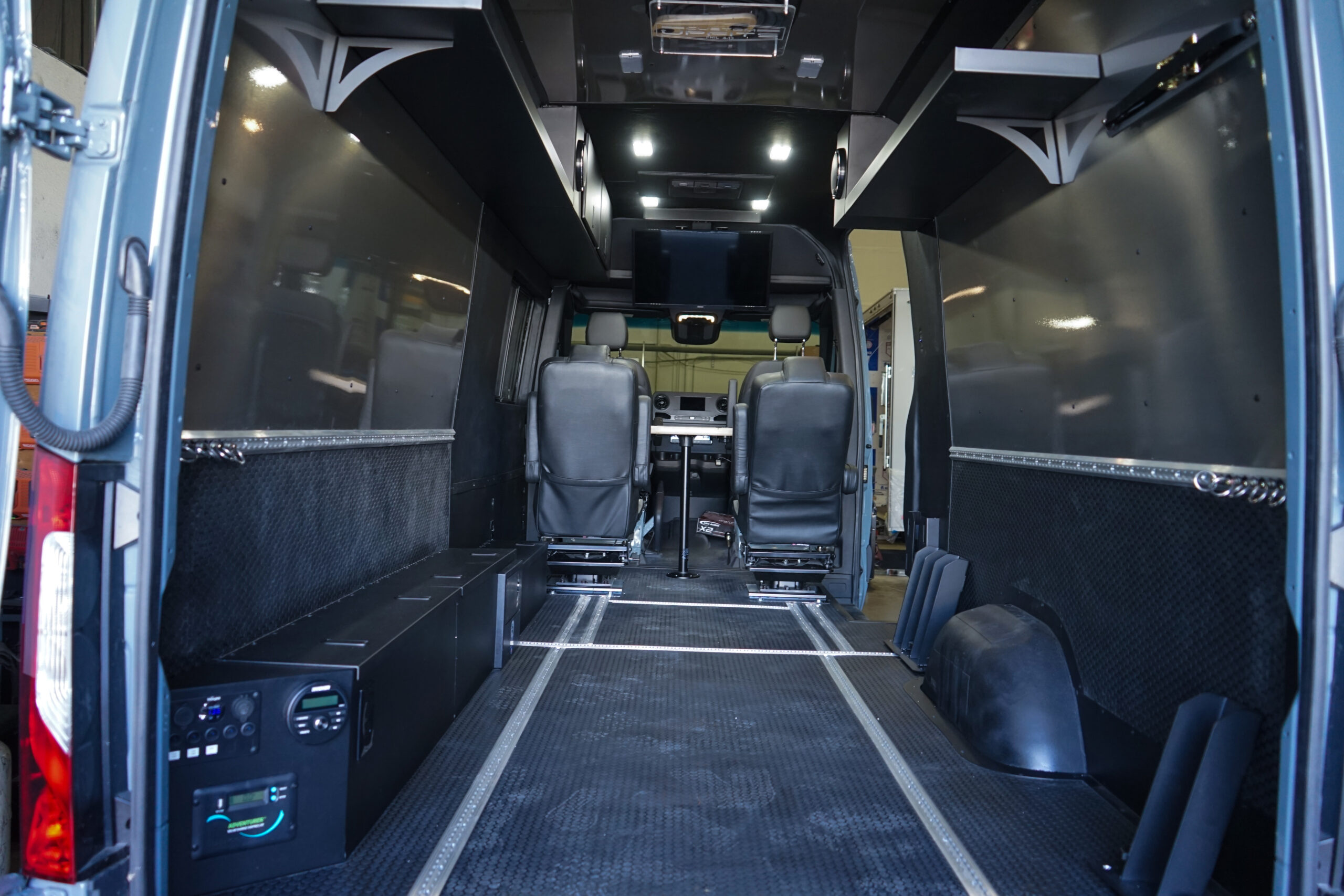 Up front a combination sleep, travel and entertainment package can be customized to match your style. It all about creating a great space so you can enjoy the ride.